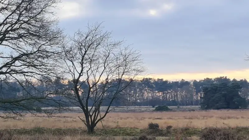Ik neem de afslag naar een klein hobbelig en glad pad. Door zo stil mogelijk te zijn hoop ik op het spotten van wild. Het pad is zo smal dat mijn voeten amper naast elkaar passen. De in rust staande heide komt tot aan mijn knieën. Aan het begin en einde van de wandeling hoor ik verschillende vogels fluiten. Waar waren deze geluiden in de tussentijd? Verstilden zij net als ik in het sombere bos of was ik even niet in het hier en nu maar afgedwaald in gedachten?